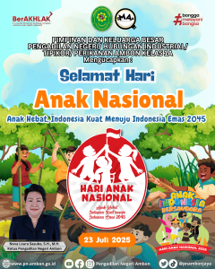 Pimpinan dan Keluarga Besar Pengadilan Negeri / Hubungan Industrial / Tipikor / Perikanan Ambon Kelas 1A, mengucapkan : Selamat Hari Anak NasionalAnak Hebat Indonesia Kuat Menuju Indonesia Emas 2045 ——- Jika Anda memiliki pertanyaan seputar pelayanan pada Pengadilan Negeri Ambon Kelas 1A, silahkan menghubungi kami melalui Direct Message Instagram atau bisa mengirimkan email ke pnambonpengadilan@yahoo.co.id […]