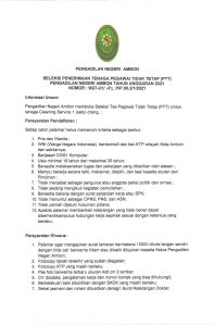 Pengumuman Seleksi Penerimaan Tenaga Pegawai Tidak Tetap (PTT) Pengadilan Negeri Ambon Tahun 2021 February 11, 2021 by Admin Baca Selengkapnya