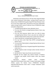 PENGUMUMAN HASIL SELEKSI LEMBAGA PEMBERI LAYANAN POSBAKUM January 27, 2020 by Admin Baca Selengkapnya